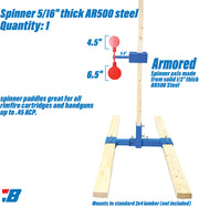 Spinner is 5/16" thick AR500 steel, 4.5" & 3.5" paddles with 5.5" AR500 arm.