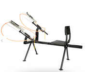 The DOUBLE-HEAD FULL COCK TRAP incorporates the same features as the Single Trap, but with an extra throwing arm that allows it to throw report pairs, in addition to the full Do-All target range. This model can launch four targets simultaneously, making it a top choice for team events and other challenging clay target games. Because of their solid, reliable construction, Do-ALL Traps are used at top sporting clays courses, trap clubs, and shooting ranges. A three-pivot mount lets you throw any targets (rabbits and birds), as singles or stacked doubles, in all directions, and at any angle. They’ll throw singles up to 80 yards and stacked doubles up to 60 yards, and a sliding adjustable clip permits easy changing of speed and direction. Cocking is easy, which, combined with the comfortable fold-down seat, makes even long hours of throwing fun. Setting the arm on any of the full-cocks is easy because the frames put your body in the right position. The positive-locking trigger is safe and quick. And, since they’re made of aluminum and cast steel tubing, they’ll last for years. Assembles in minutes, and comes complete with adjusting wrench.