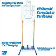 The 3-in-1 stand also offers two sets of tubes to perfectly fit 1x2 firring strips for mounting 18" & 24" wide paper, corrugated cardboard or the Bash Target coroplast target boards.