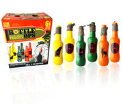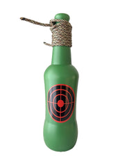 6PK of long neck target shooting bottles. Reactive shooting targets with paracord to hang bottles. Bottles are constructed of thick polyethylene. Can handle all calibers (Shotgun, Rifle, Handgun). Fillable with liquid, powder, sand to enhance the reactivity. Each bottle printed with game on one side and 2.6 inch target on one side. Bottles can be shot over 50 times based on caliber. (Filling bottles to the brim can sometimes result in blowouts or cracking. For the best reactive result fill bottles half way.)