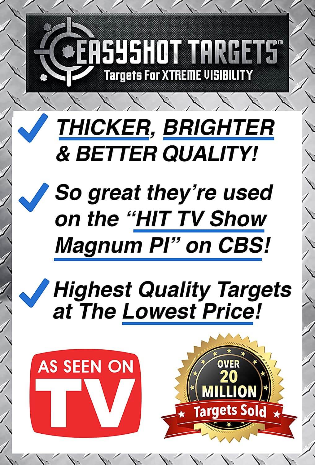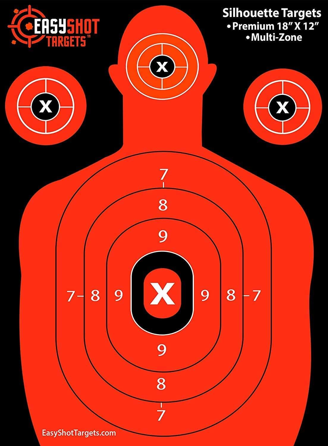 - DURABLE & VERSATILE 18" x 12" SIZE: EasyShot firearms targets work flawlessly with virtually all gun types including: pistols, rifles, airsoft, BB, pellet guns and even shotguns. Great for shooting indoors and outdoors, short range or long range.
