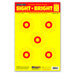 Ultra bright target plus dark bullet hole equals superior contrast for the easiest down range visibility. Thompson's new SIGHT-BRIGHT is a twist on the classic bullseye target with bright neon-red 4" bulls on a fluorescent yellow background. The extreme color contrast results in a brighter target with better sight-to-target alignment, making it the optimum visual for all pistol and rifle shooting applications. A scoring area is included on each target.
