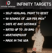 The ultimate defensive training target! Silhouetted to mimic the outline of a humanoid threat, our Infinity Torso Target is the perfect tool to train for self-defense situations. In two styles: blank or with anatomical vital zones, the target still offers up to a 6000+ round lifespan with our Gen 2 material. After implementing this Torso Target into your training regimen, you’ll be ready to hit your mark when it matters most!